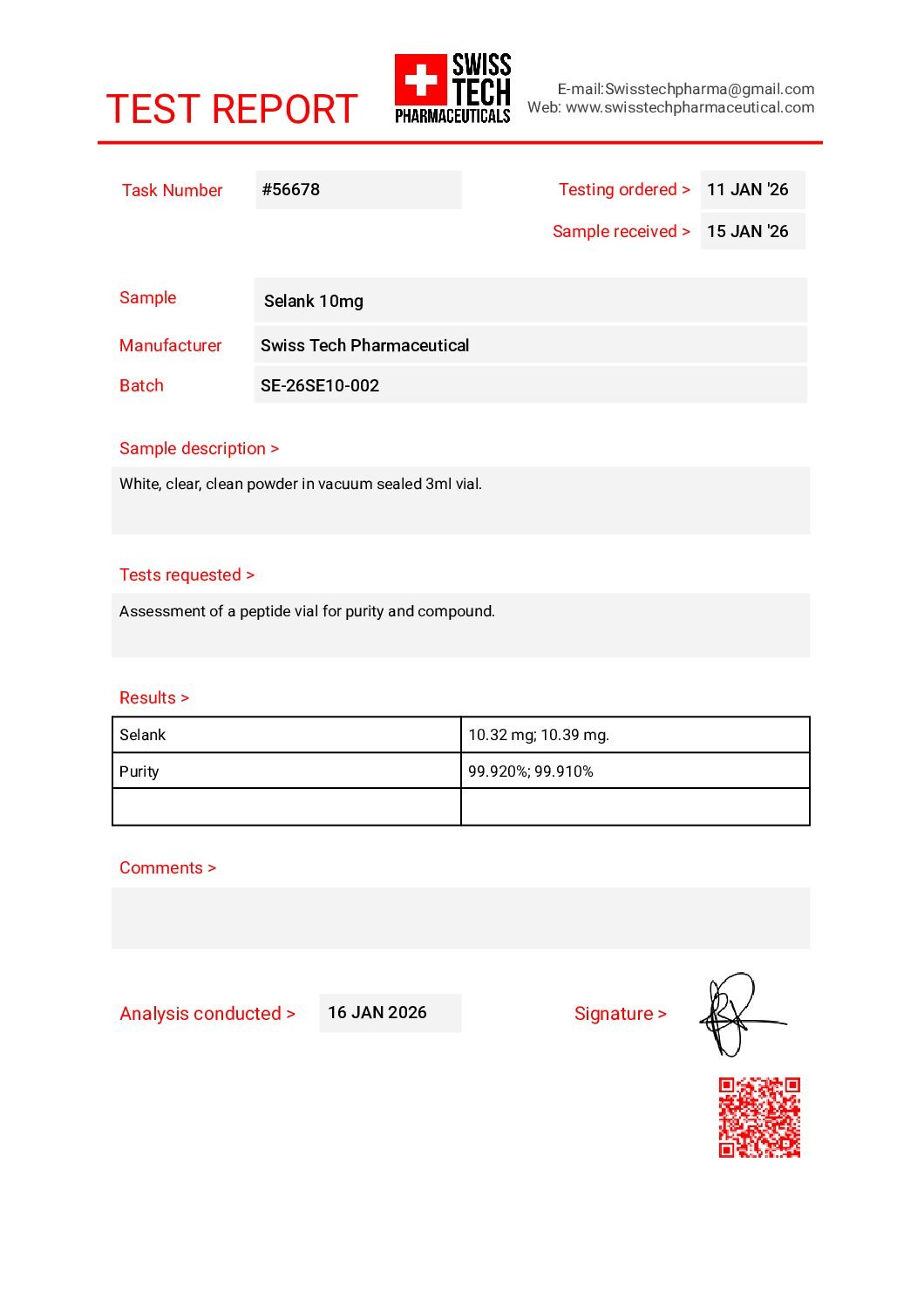 Selank (10mg) is a peptide that reduces anxiety and boosts brain power. It naturally balances mood chemicals (serotonin/dopamine) to help you stay calm and focused without drowsiness. Popular for stress relief and mental performance.